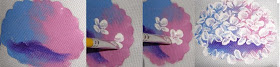 Para fazer essas hortênsias , use rosa ciclame , azul caribe e violeta para a área de sombra.
